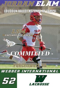 Babson Park, Fla. (07/14/2020) — BABSON PARK, Fla. (July 14, 2020) - Head Men's Lacrosse Coach Chris Burdick has announced that former University of Tampa long stick midfielder Jordan Elam has signed with the Webber International University men's lacrosse program.